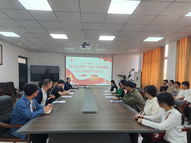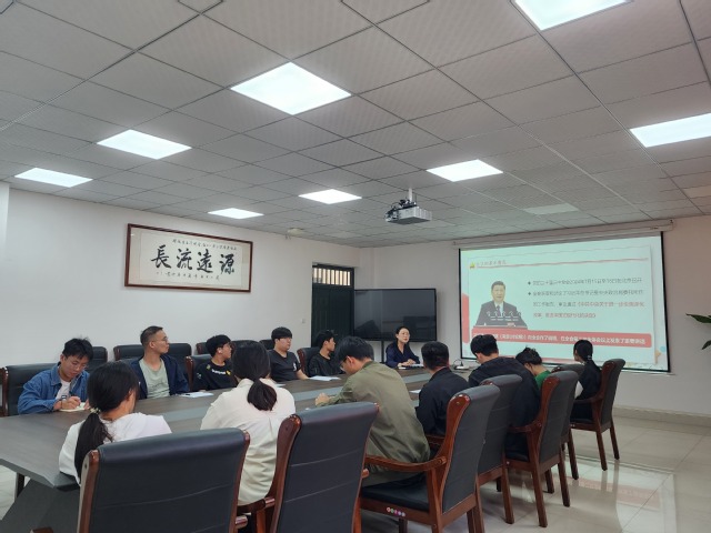 党委书记孙琳在315会议室为联系班级和党支部学生讲授《深入学习党的二十届三中全会精神奋力书写新时代青春答卷》专题思政课。新能源2101班本科生和研究生支部党员代表参加学习。