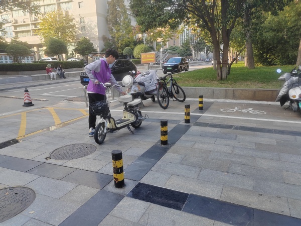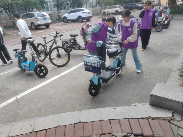 活动中,志愿者们积极行动。他们穿梭于校园各处,对随意停放的电动车进行重新摆放。志愿者们分工有序,将一辆辆电动车整齐地停放在规定区域,使校园环境更加整洁、有序。他们不仅在行动上改变着校园风貌,还向同学们宣传文明停车的意义,倡导大家共同维护校园秩序。
