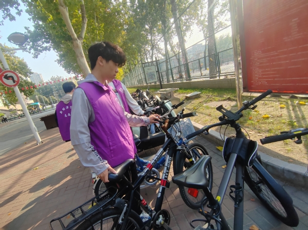 为了创造更便捷安全的校园环境,秋日的校园里,必赢 “碳”索家志愿服务队积极开展“拒绝乱停放,打造新气象”整治电动车乱停乱放的志愿者服务活动。