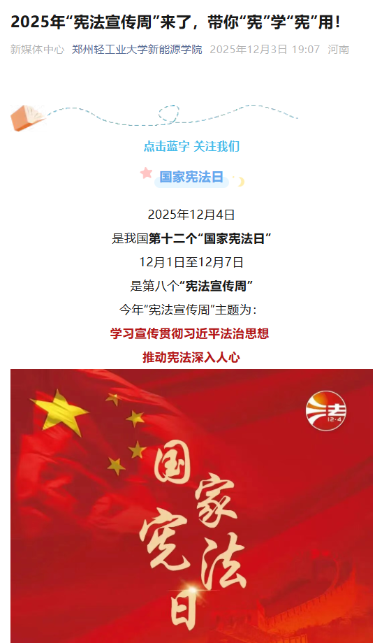 为全面学习贯彻党的二十大和二十届历次全会精神,深入学习贯彻习近平法治思想,落实全国全省教育大会精神,加强宪法法治教育,弘扬宪法精神、维护宪法权威,在第十二个国家宪法日到来之际,必赢 于12月1日至7日围绕“学习宣传贯彻习近平法治思想,推动宪法深入人心”主题,开展“宪法宣传周”系列活动,将宪法法治教育融入校园生活,让法治信仰在学子心中落地生根。