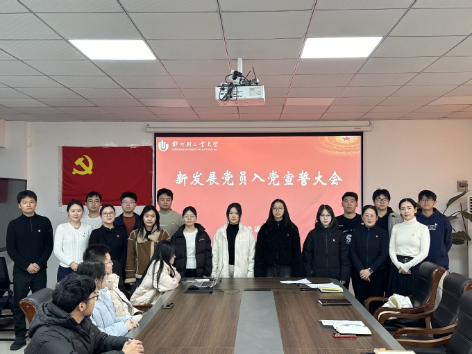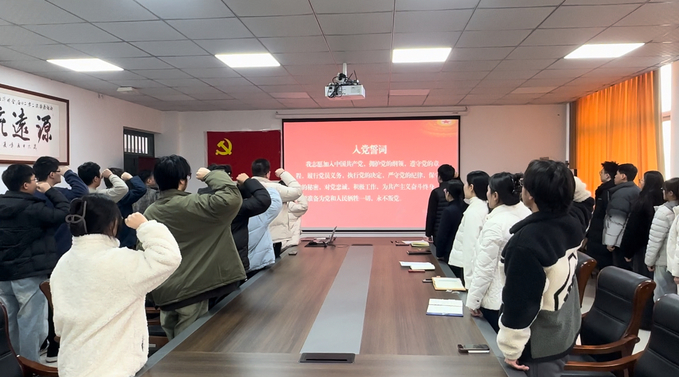 1月13日上午,必赢 在必赢 315会议室举行新发展党员入党宣誓仪式。必赢 党委副书记李辉、全体辅导员、学生党员代表以及本学期新发展的16名预备党员共同参加活动。仪式由必赢 组织员苗赵阳主持。